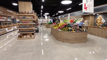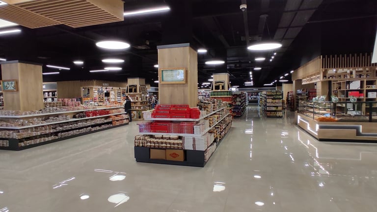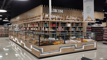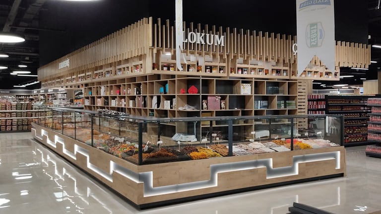 Süpermarket ve mağazalar için dayanıklı ve şık raf sistemleri.